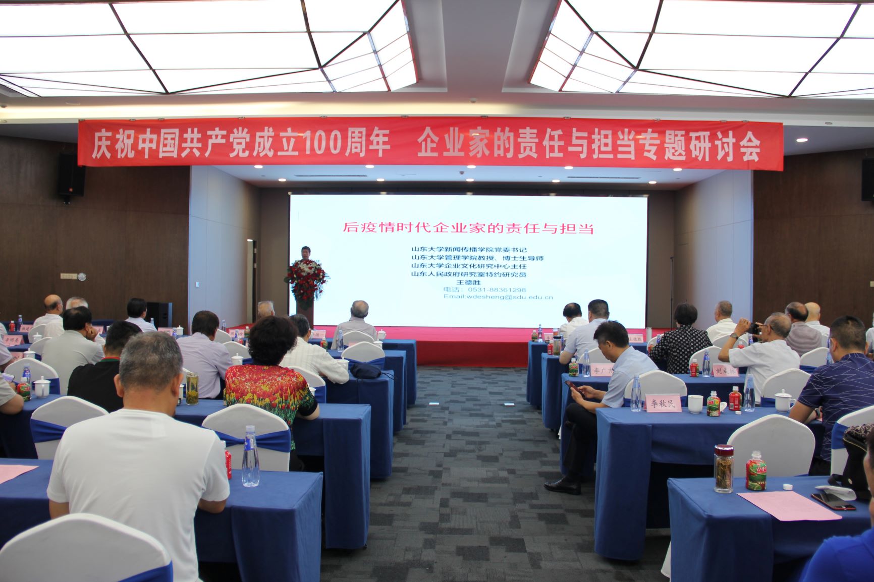 專題研討會(huì)上,濟(jì)寧市國(guó)際國(guó)內(nèi)公共關(guān)系協(xié)會(huì)會(huì)長(zhǎng)、山東大學(xué)濟(jì)寧校友會(huì)理事長(zhǎng)韓宇以《后疫情時(shí)代企業(yè)家的責(zé)任與擔(dān)當(dāng)》為主題進(jìn)行了分享。重點(diǎn)分析了后疫情時(shí)代復(fù)雜多變的國(guó)際國(guó)內(nèi)形勢(shì),剖析我國(guó)的應(yīng)對(duì)策略,強(qiáng)調(diào)了企業(yè)家在經(jīng)濟(jì)發(fā)展中的重要作用,明確了企業(yè)家的責(zé)任與擔(dān)當(dāng)。企業(yè)家在推動(dòng)高質(zhì)量發(fā)展,深化供給側(cè)結(jié)構(gòu)性改革,推動(dòng)改革創(chuàng)新,實(shí)現(xiàn)產(chǎn)業(yè)基礎(chǔ)高級(jí)化、產(chǎn)業(yè)鏈現(xiàn)代化,加快培育完整內(nèi)需體系等方面,肩負(fù)著重要的歷史責(zé)任!弘揚(yáng)企業(yè)家精神,是企業(yè)家實(shí)現(xiàn)責(zé)任和擔(dān)當(dāng)?shù)暮诵呐c強(qiáng)大的動(dòng)力!